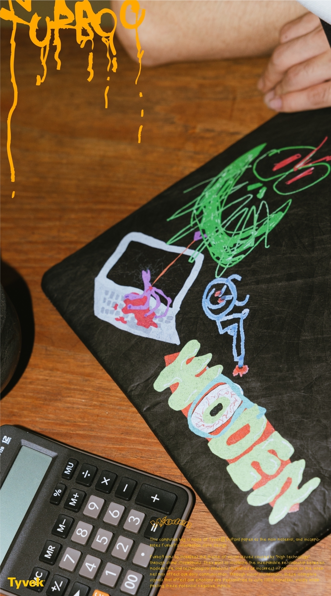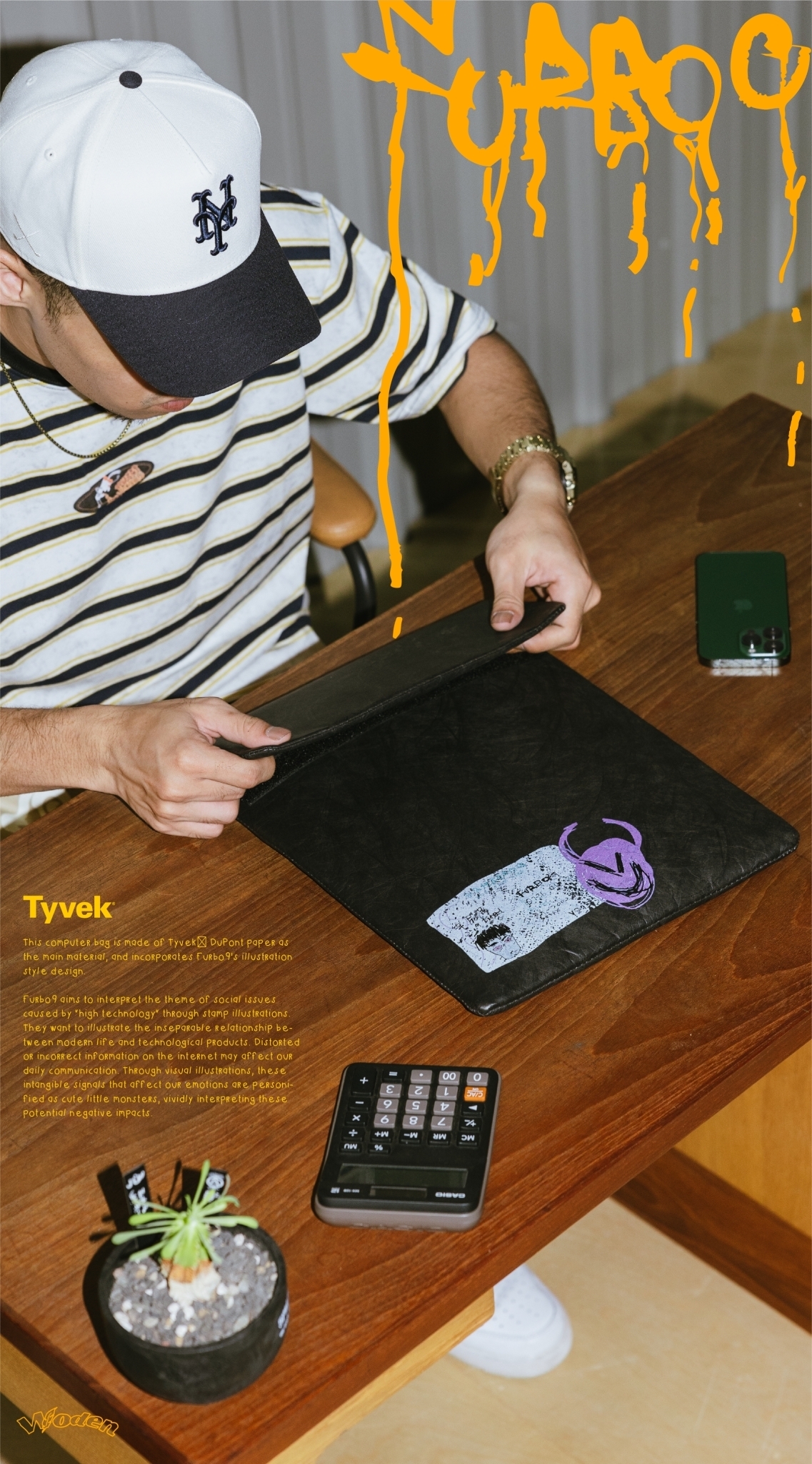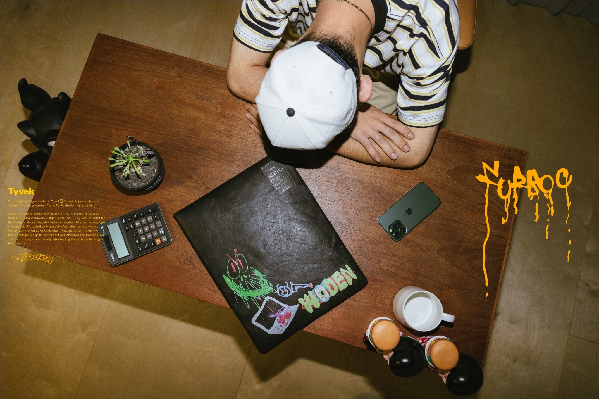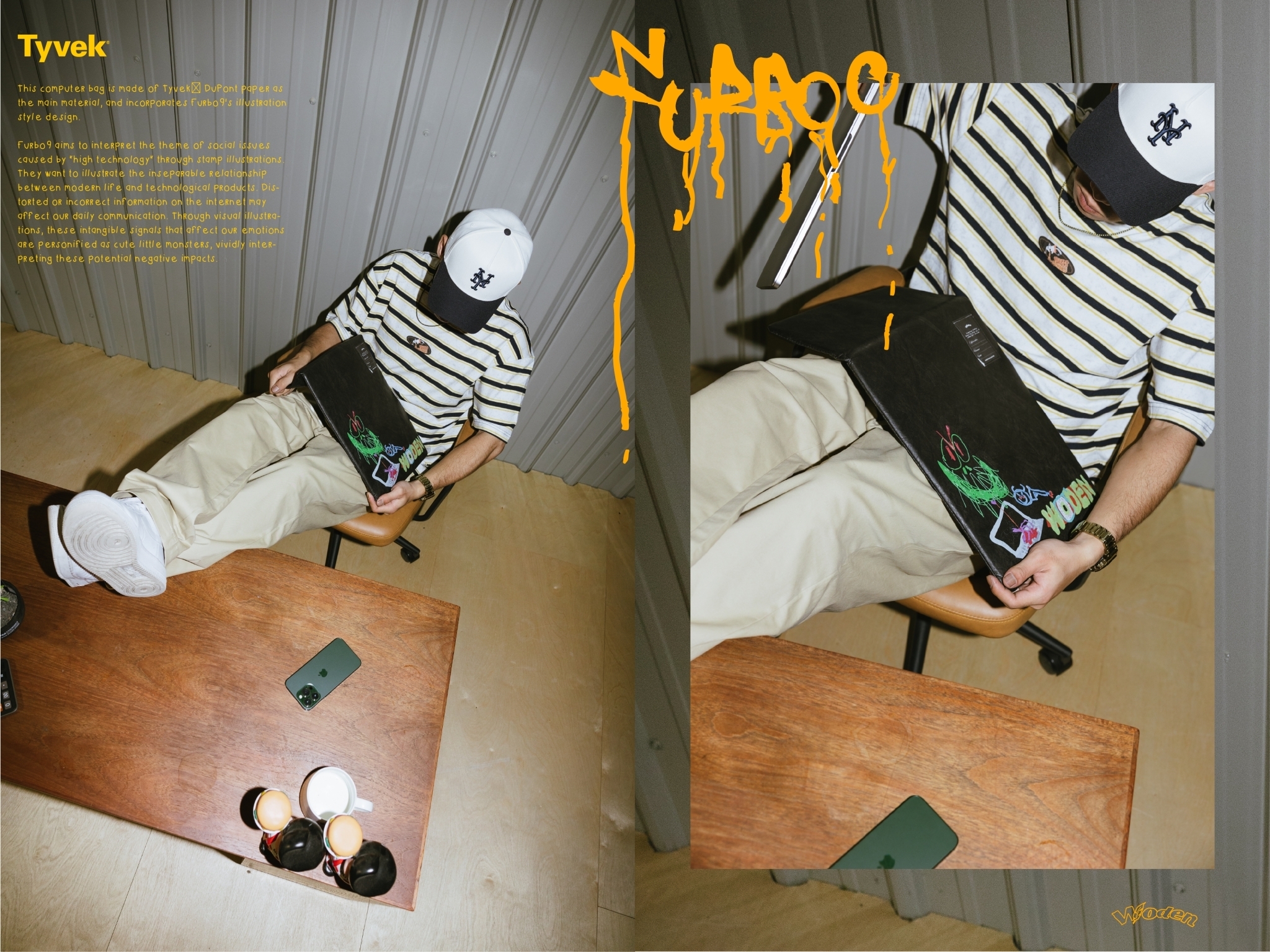 此款電腦包選用了Tyvek®杜邦紙作為主要材質,並融入了Furbo9的插畫風格設計。