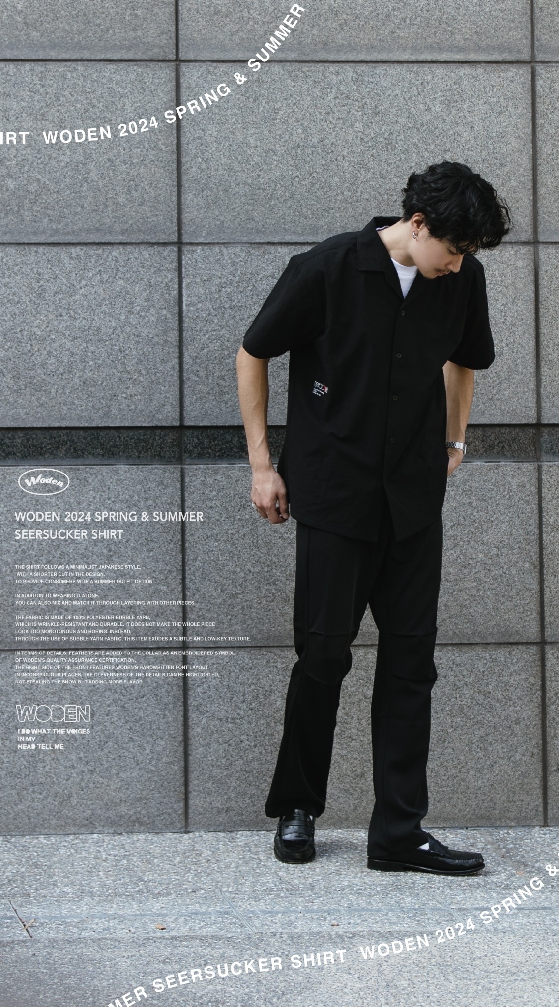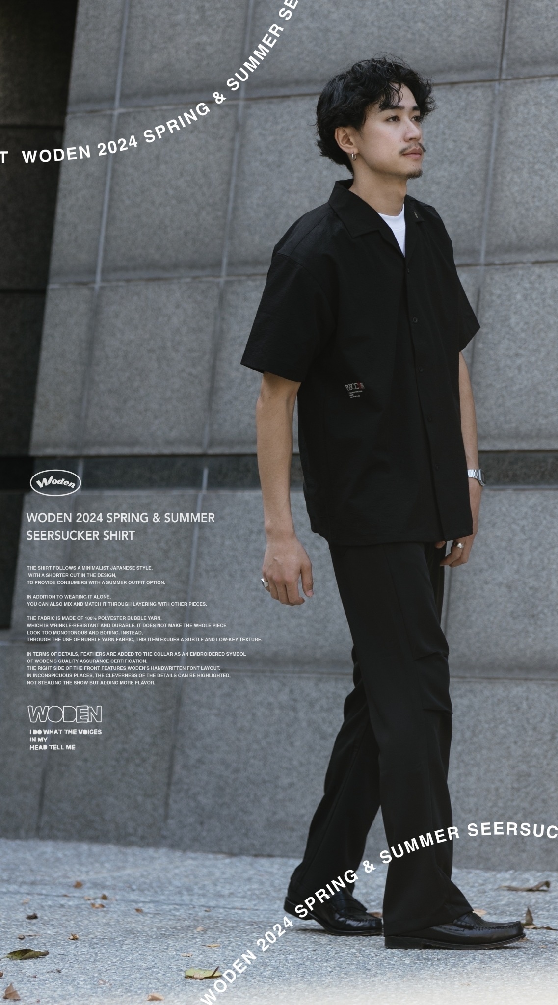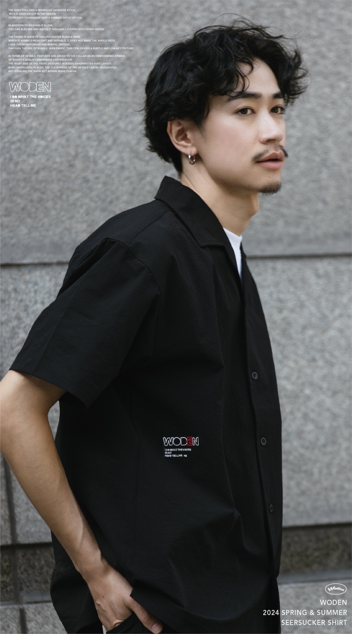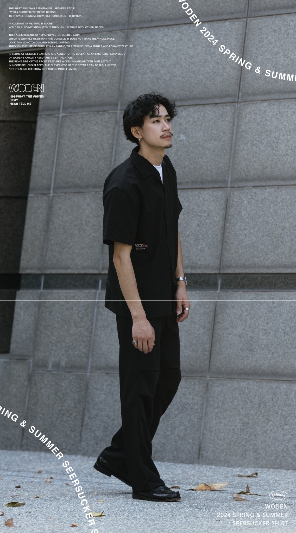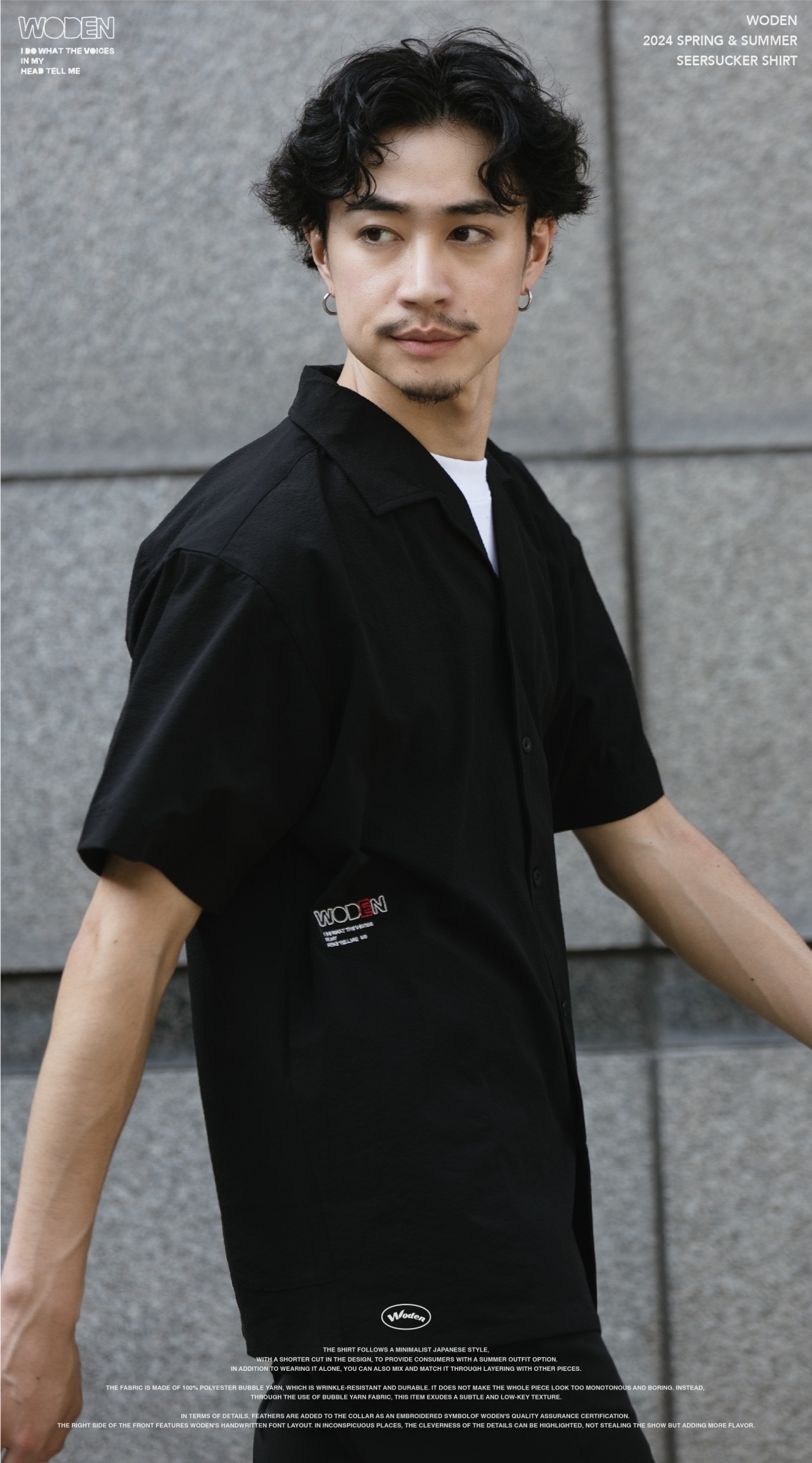 襯衫遵循日系簡約風格,在版型上選用較為短版的剪裁,為使消費者在夏季的搭配中,除了單穿著用,也可以透過外搭的方式搭配其中。