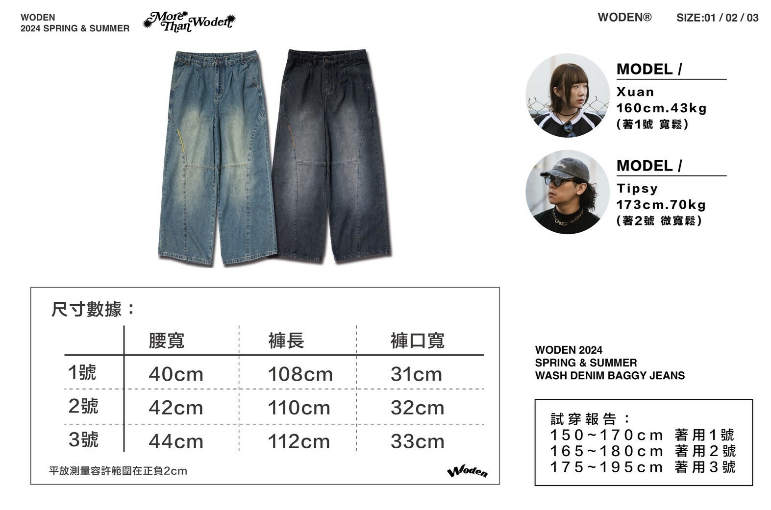 WODEN 2024 Spring & Summer Wash Denim Baggy Jeans