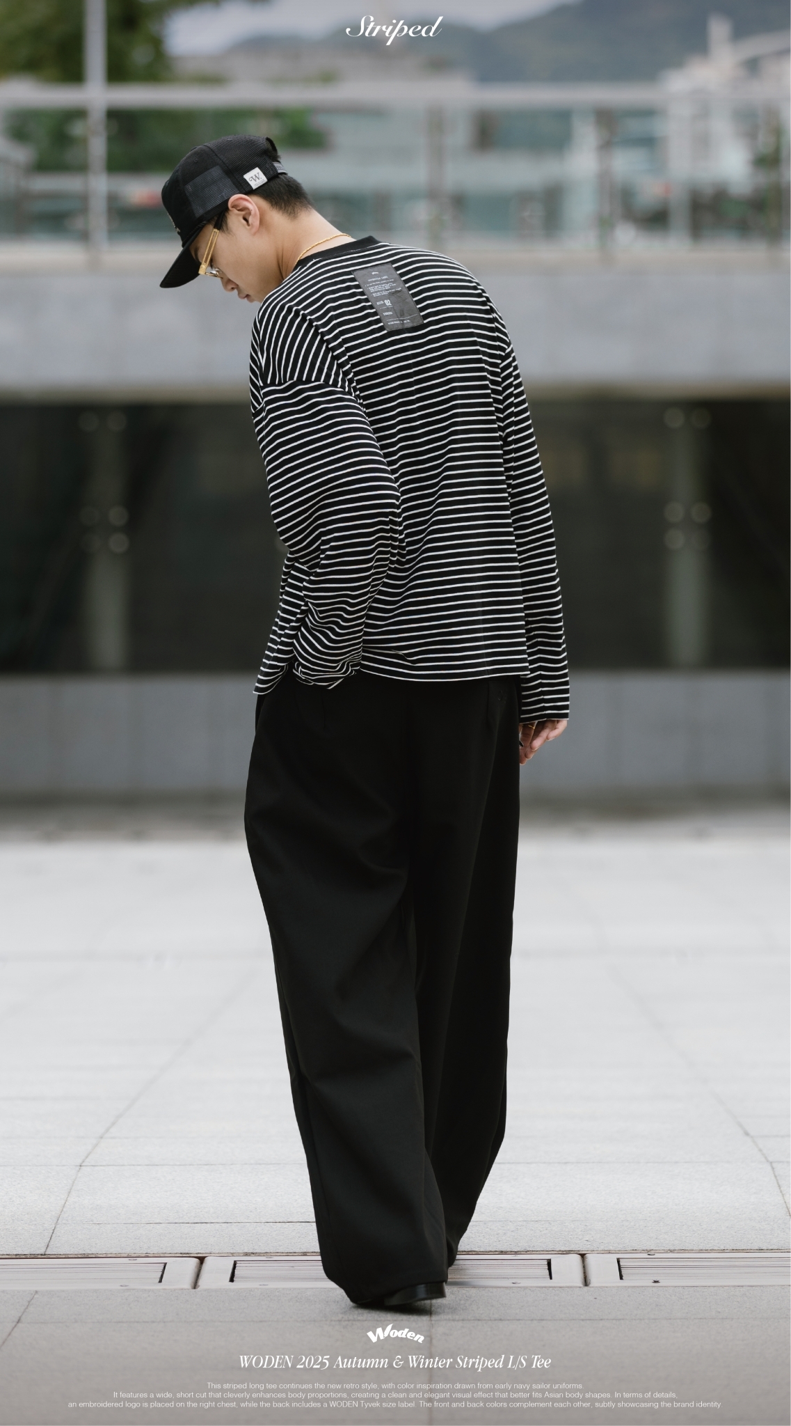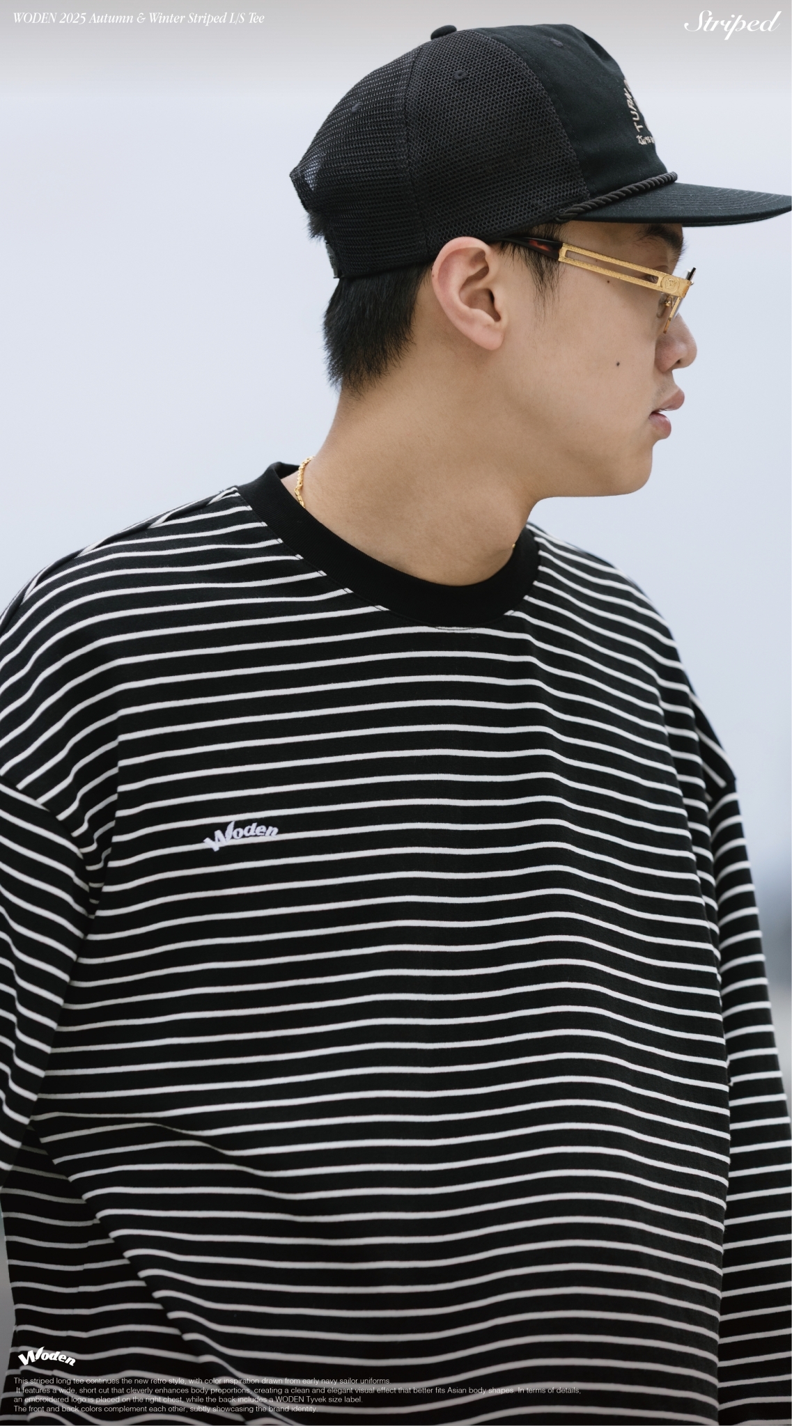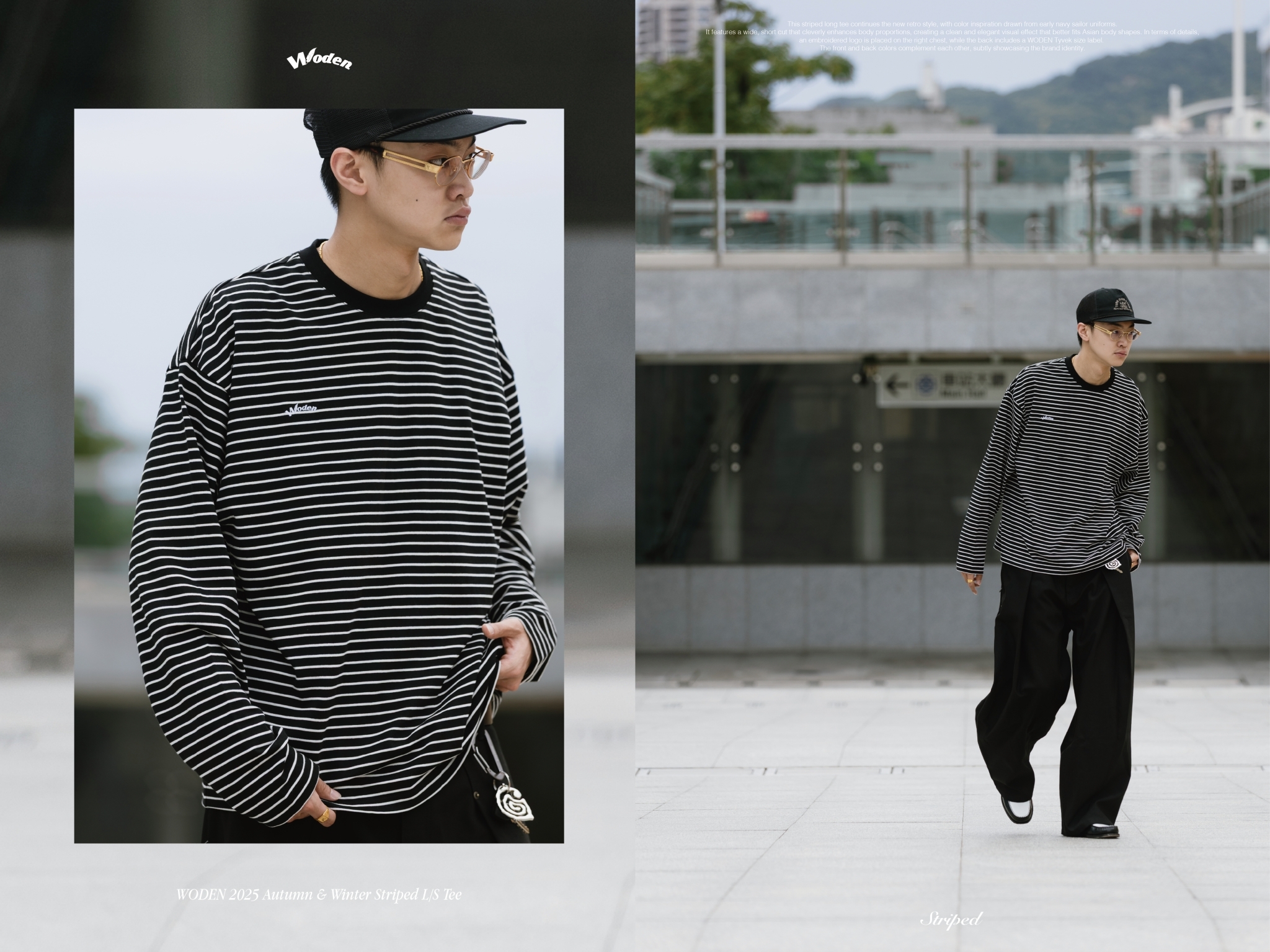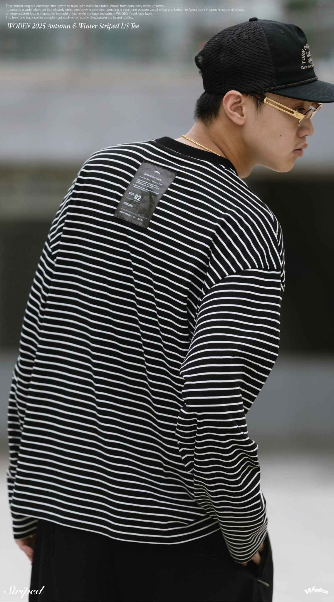 本次條紋長 Tee 延續新復古風格,配色靈感取自早期海軍水手服,結合寬短剪裁版型,巧妙修飾身形比例,營造俐落而大方的視覺效果,更貼合亞洲身形輪廓。細節設計上,右胸口配置刺繡 LOGO,背面則加入 WODEN 泰維克尺碼標,前後配色相互呼應,低調中展現品牌識別。