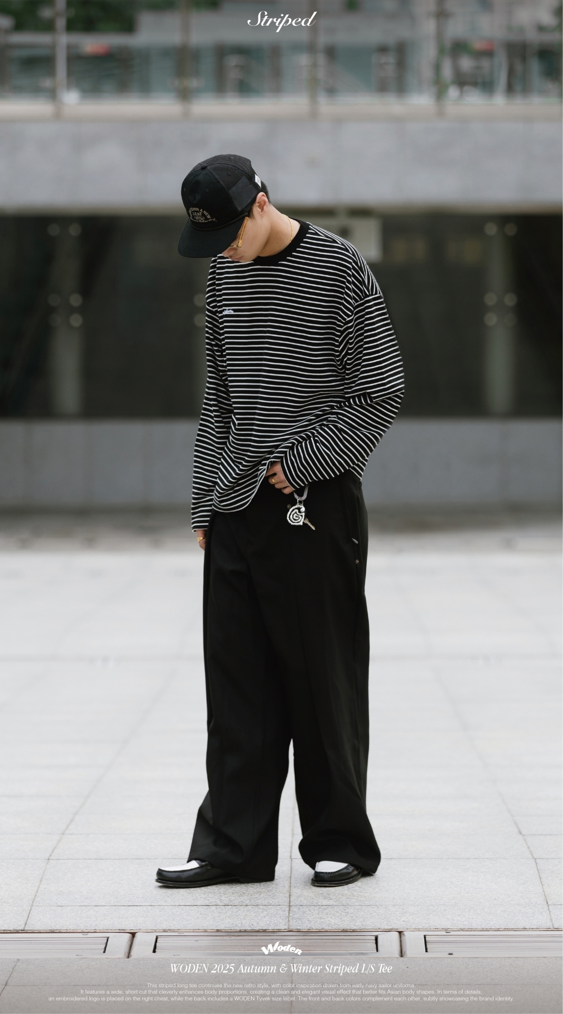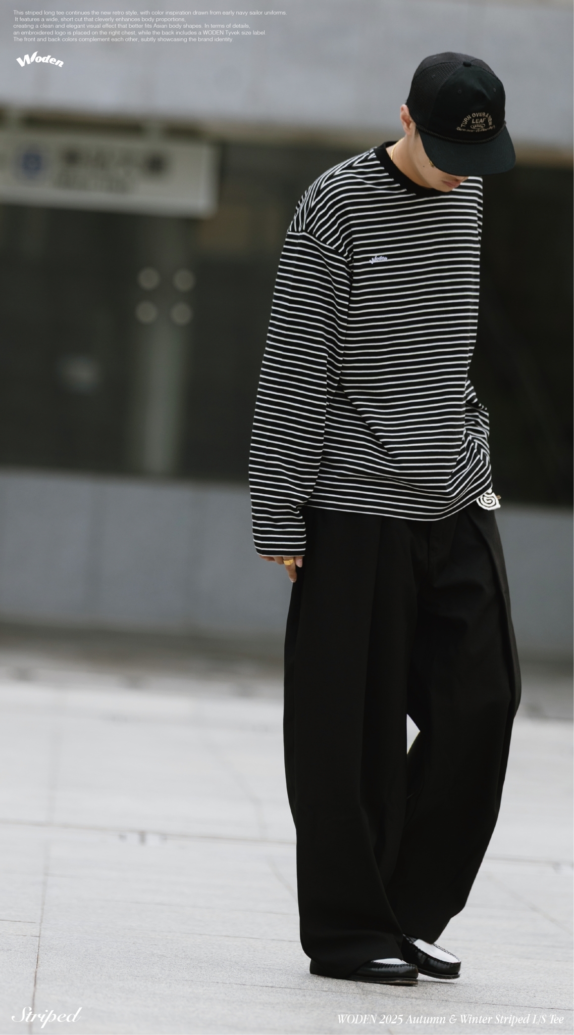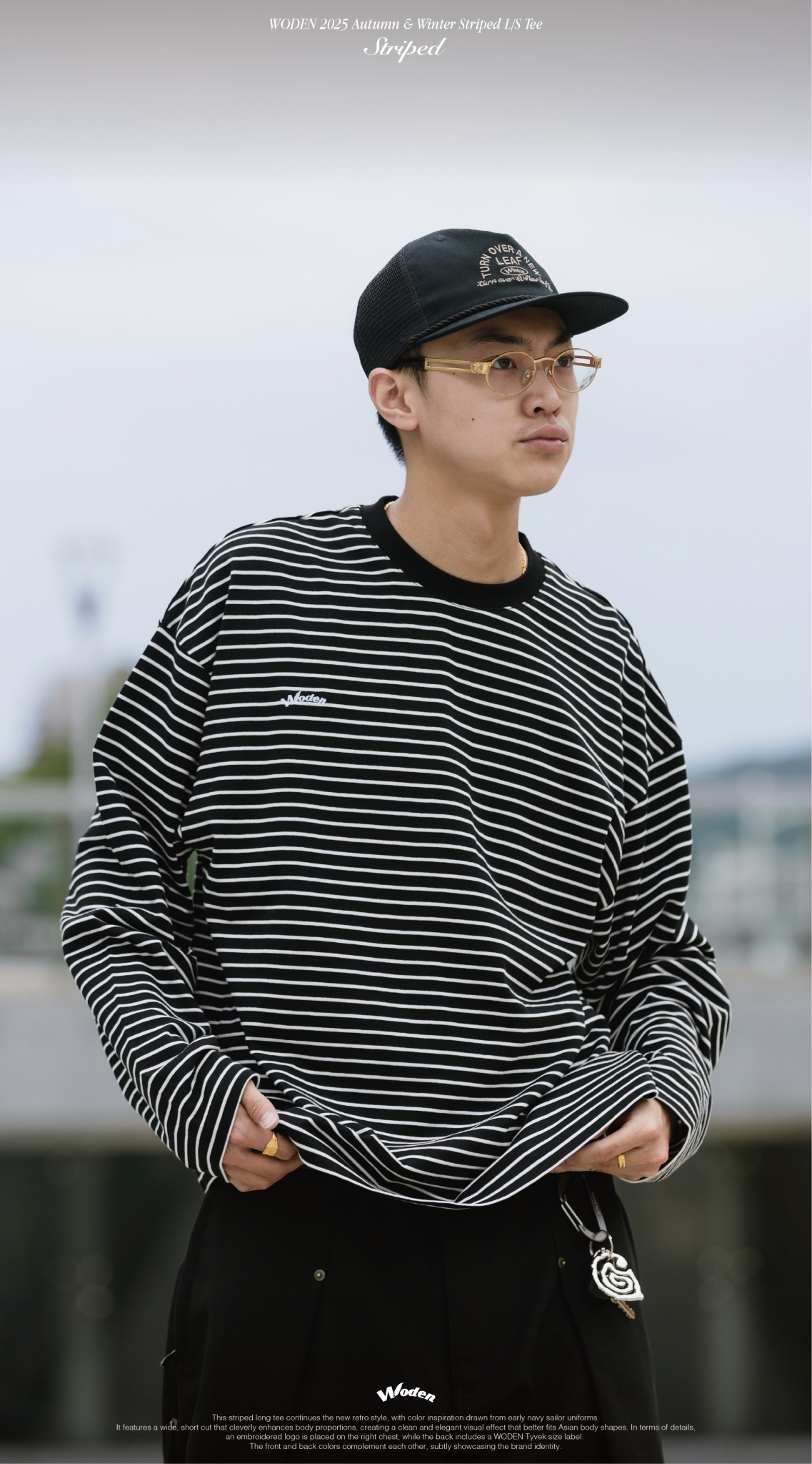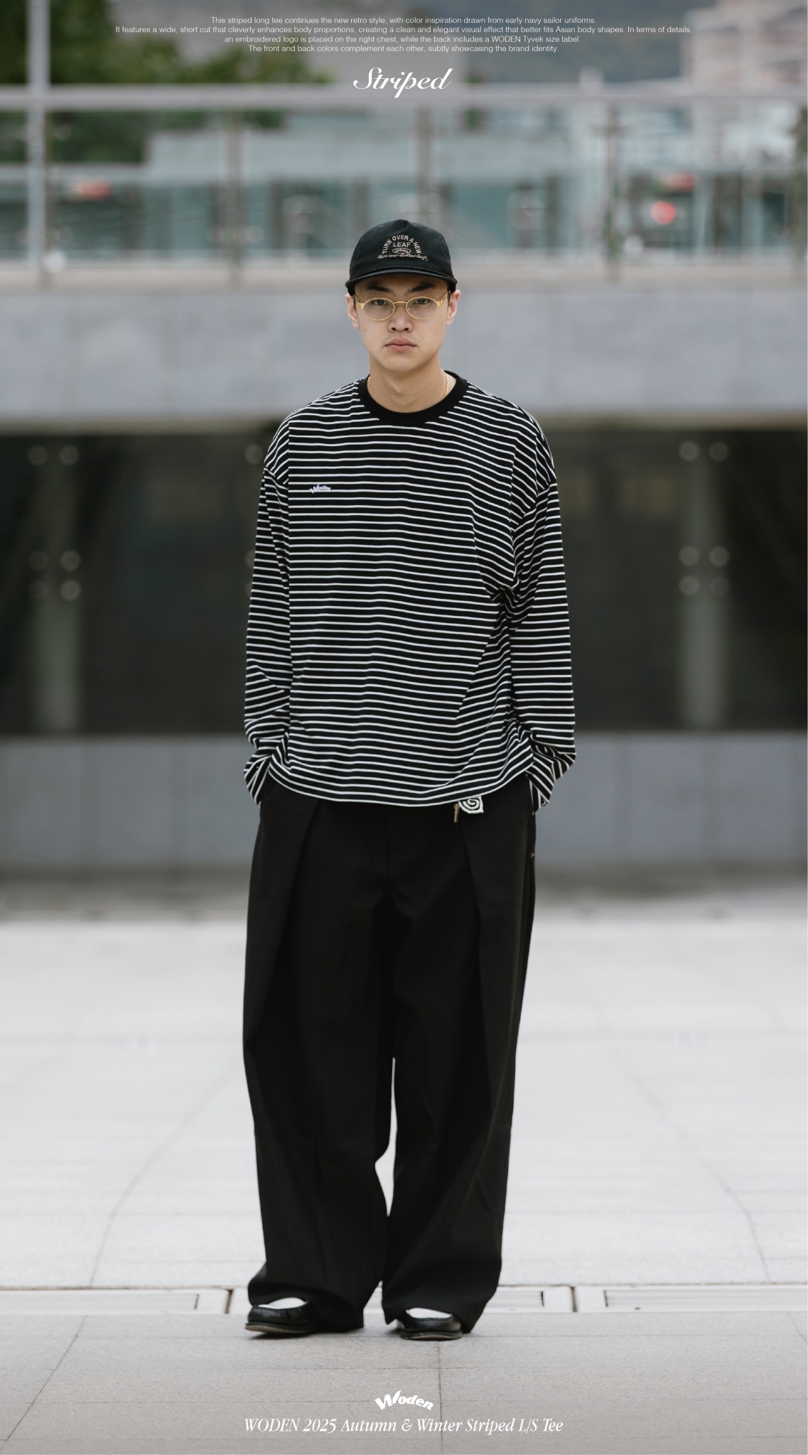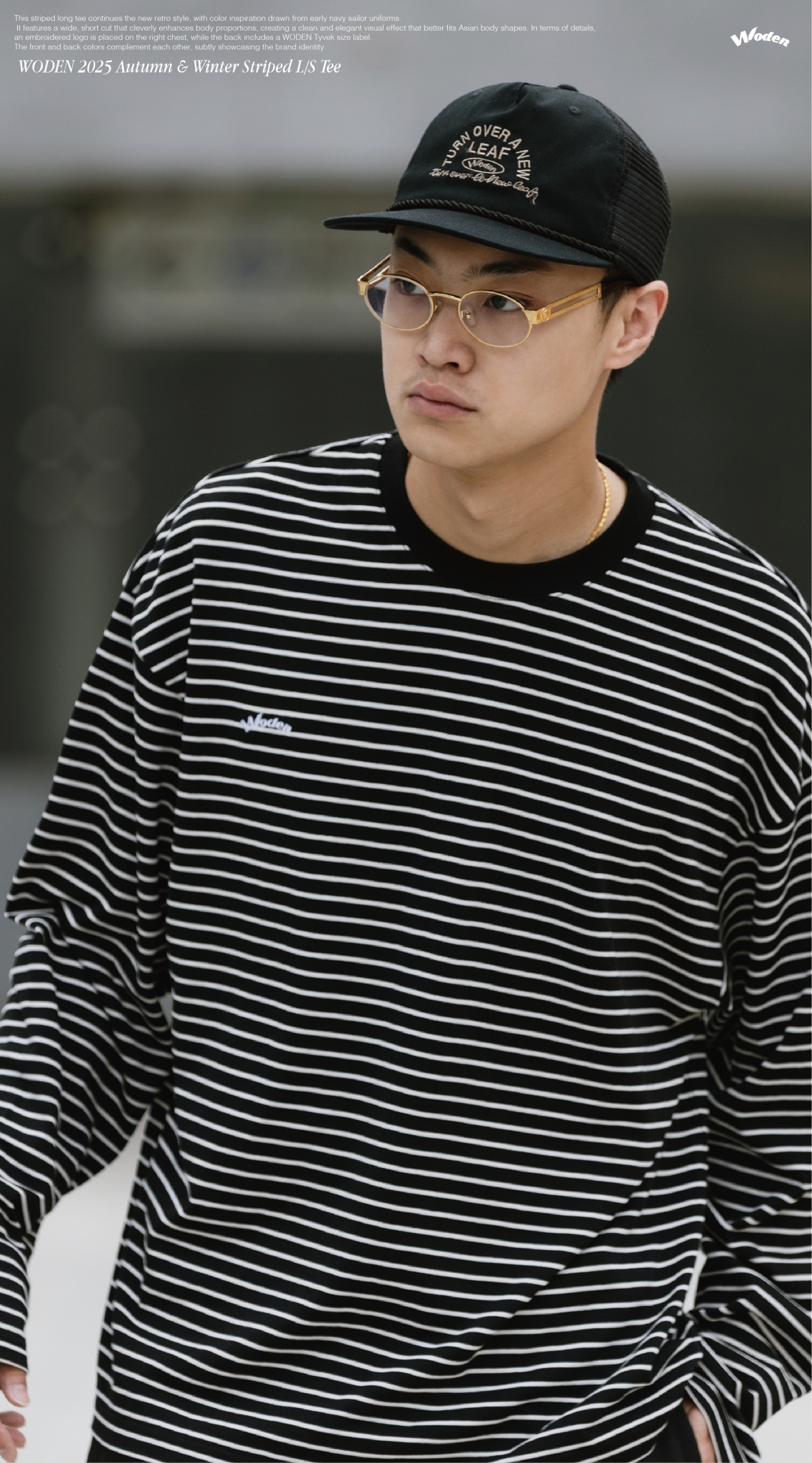 本次條紋長 Tee 延續新復古風格,配色靈感取自早期海軍水手服,結合寬短剪裁版型,巧妙修飾身形比例,營造俐落而大方的視覺效果,更貼合亞洲身形輪廓。細節設計上,右胸口配置刺繡 LOGO,背面則加入 WODEN 泰維克尺碼標,前後配色相互呼應,低調中展現品牌識別。