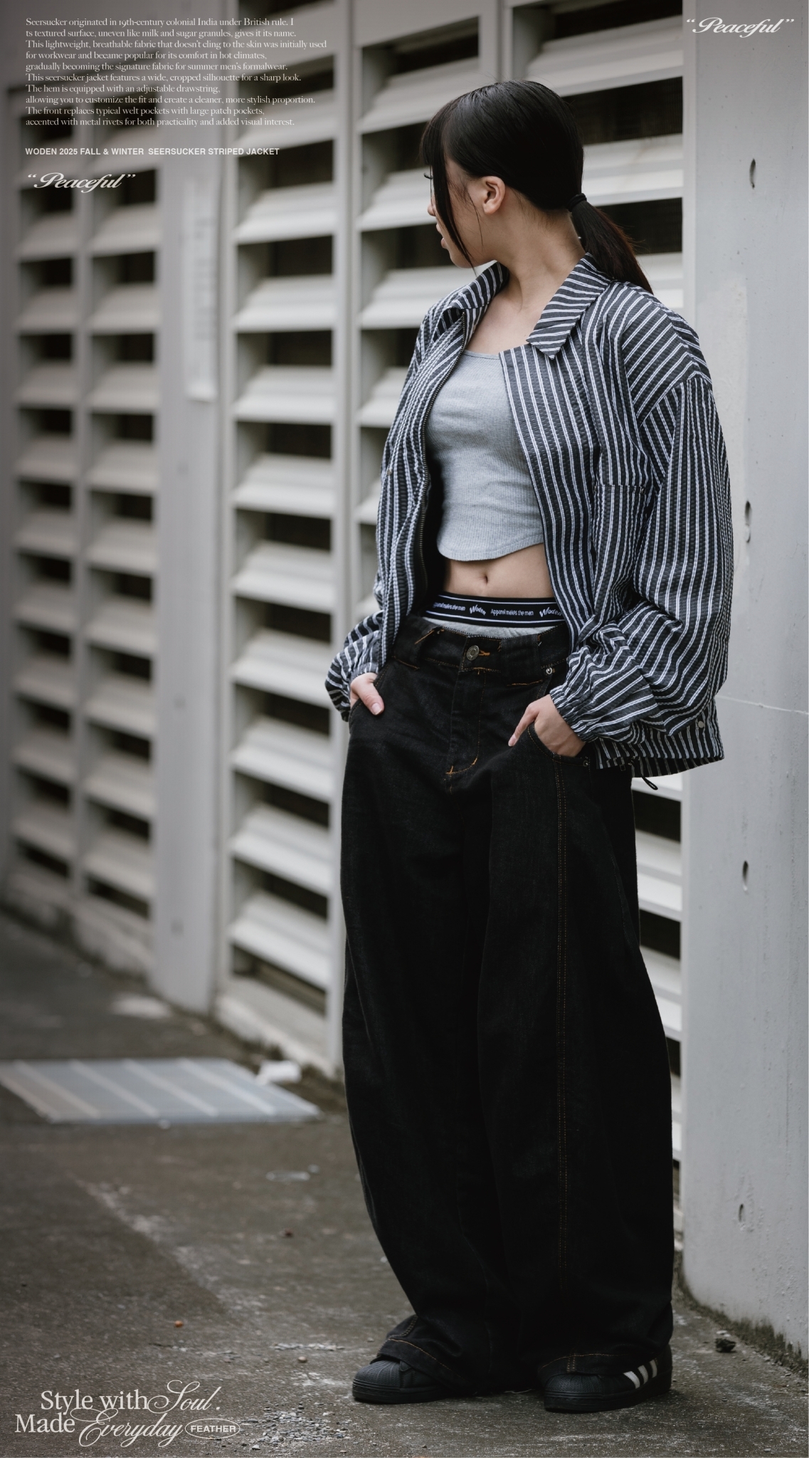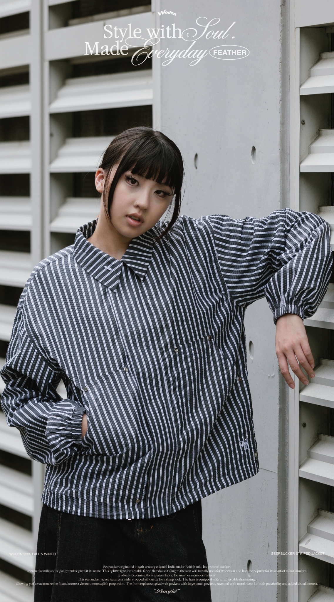 WODEN 2025 Fall & Winter Seersucker Striped Jacket