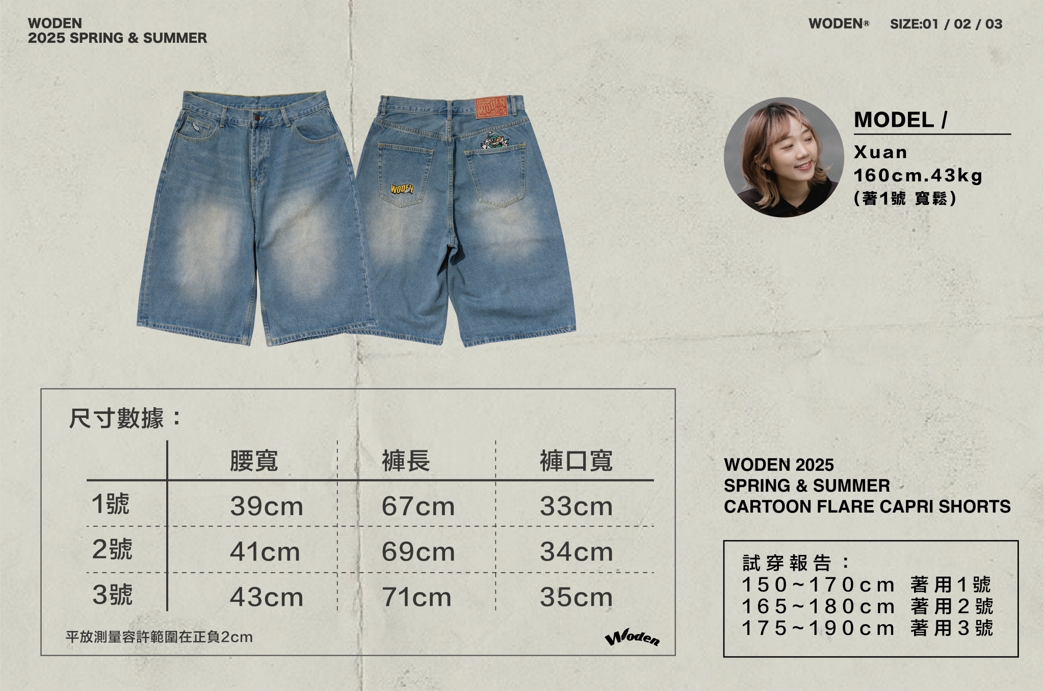WODEN 2025 Spring & Summer 010 Cartoon Flare Capri Shorts