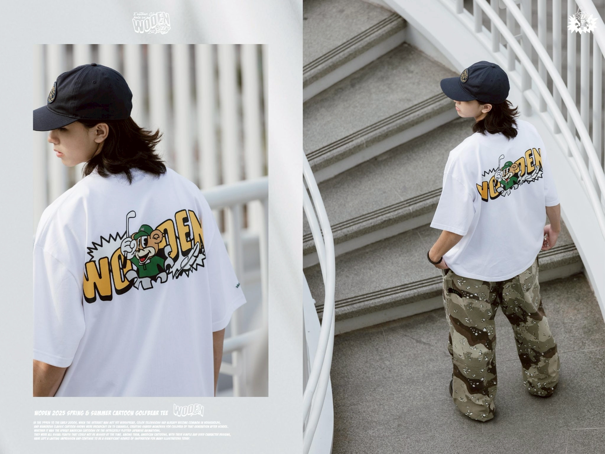 本次 T-shirt 設計以「千禧年美式卡通風格」為主題,採用經典的「前小圖、後大圖」配置,呈現濃厚的美式卡通風格。圖像將小熊卡通擬人化,並身穿 POLO 衫、頭戴高爾夫球帽、手持球竿,塑造打高爾夫的形象,並運用類似從衣服中跳出的插畫特效 和 爆炸插圖,賦予畫面更豐富的層次與動感,活潑趣味十足。