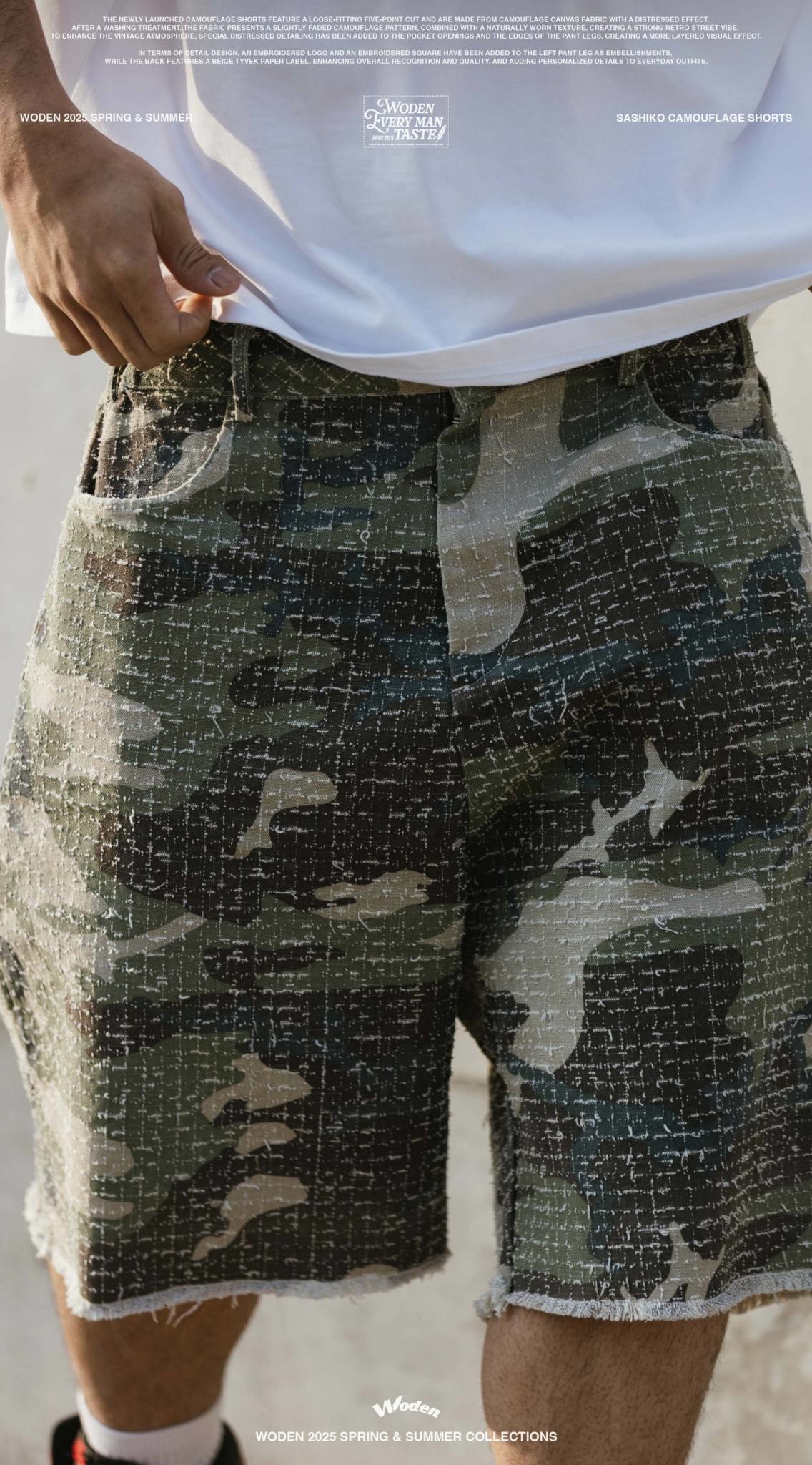 WODEN 2025 Spring & Summer Sashiko Camouflage Shorts