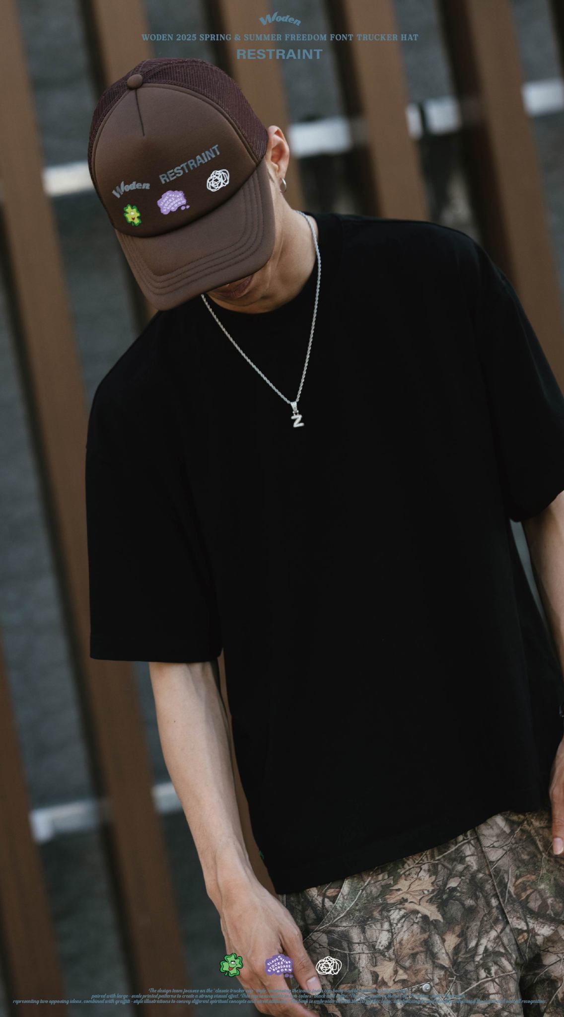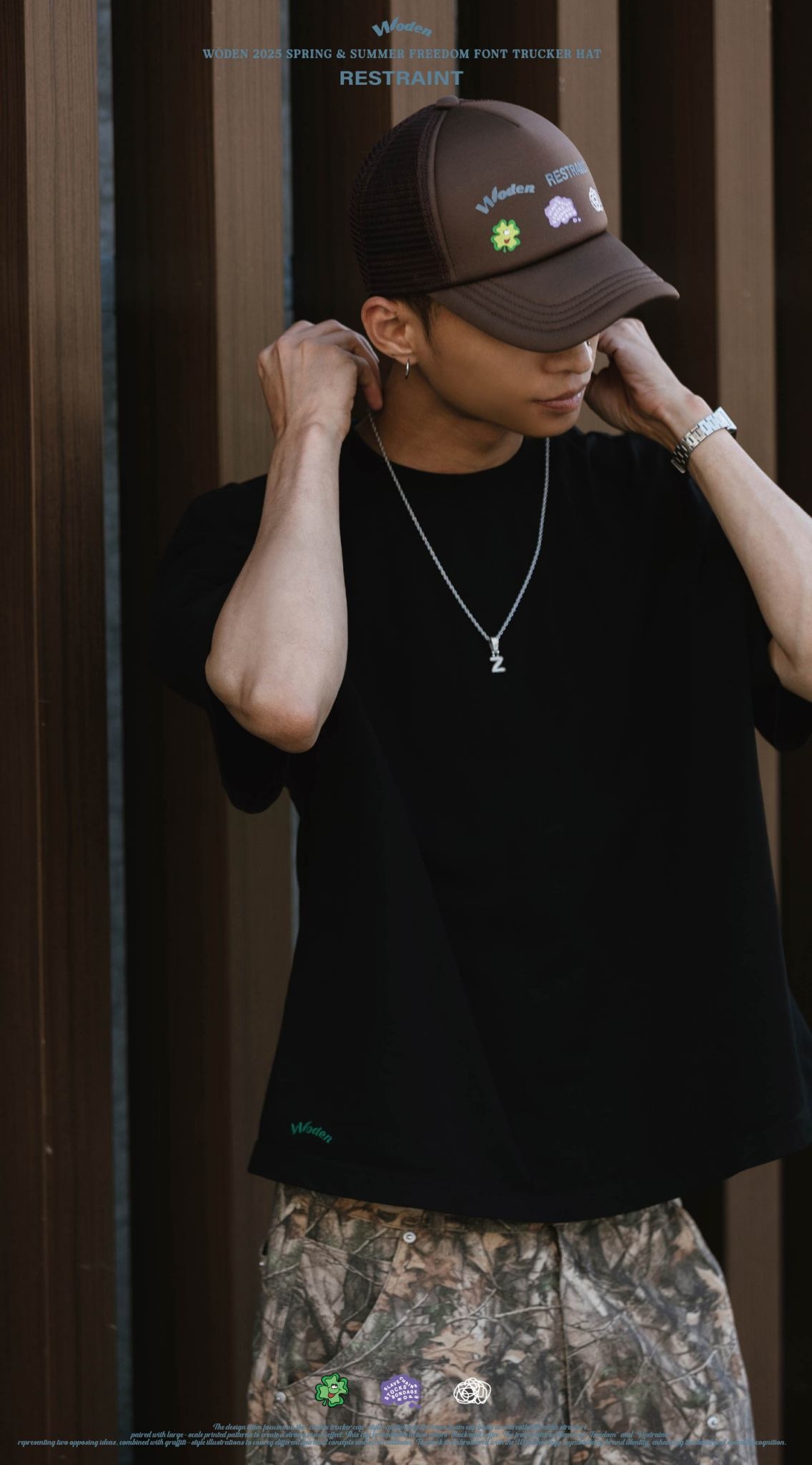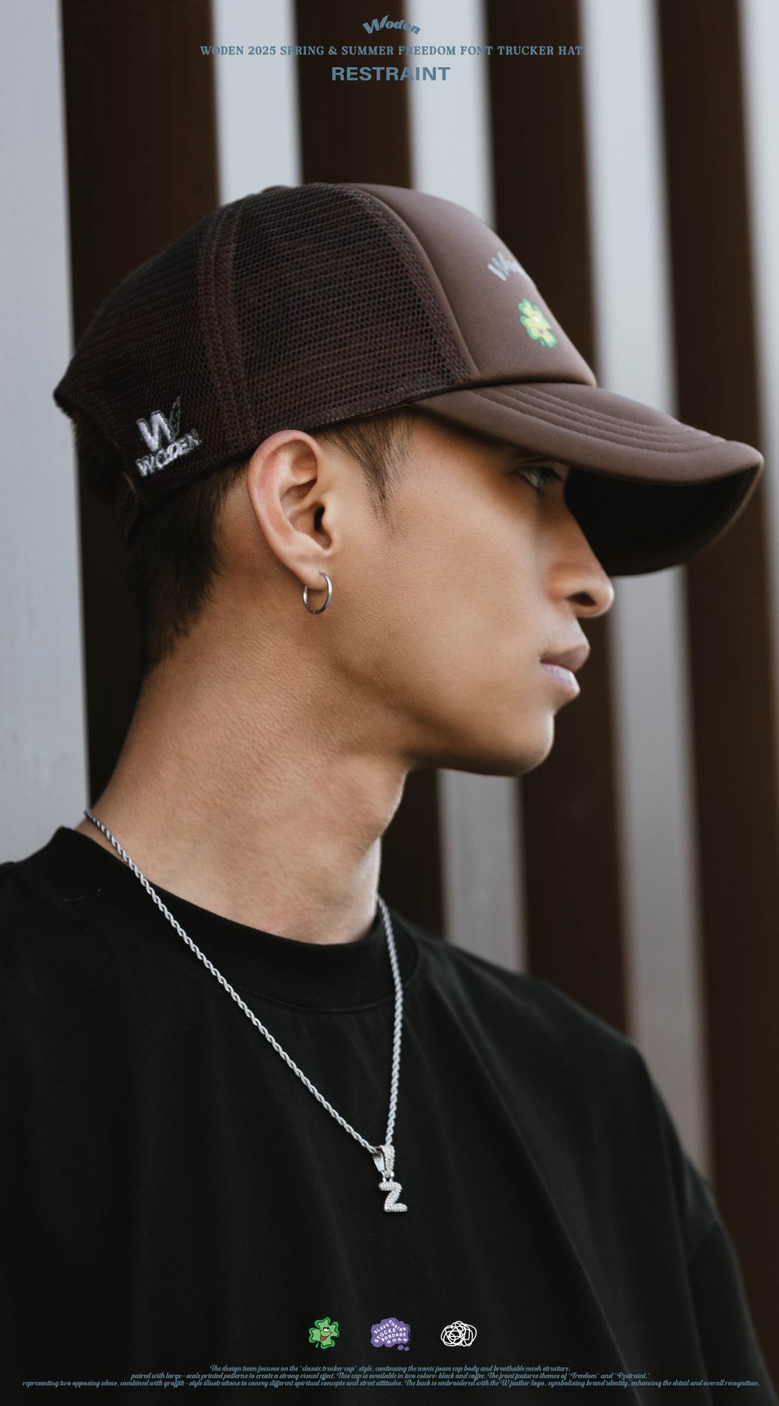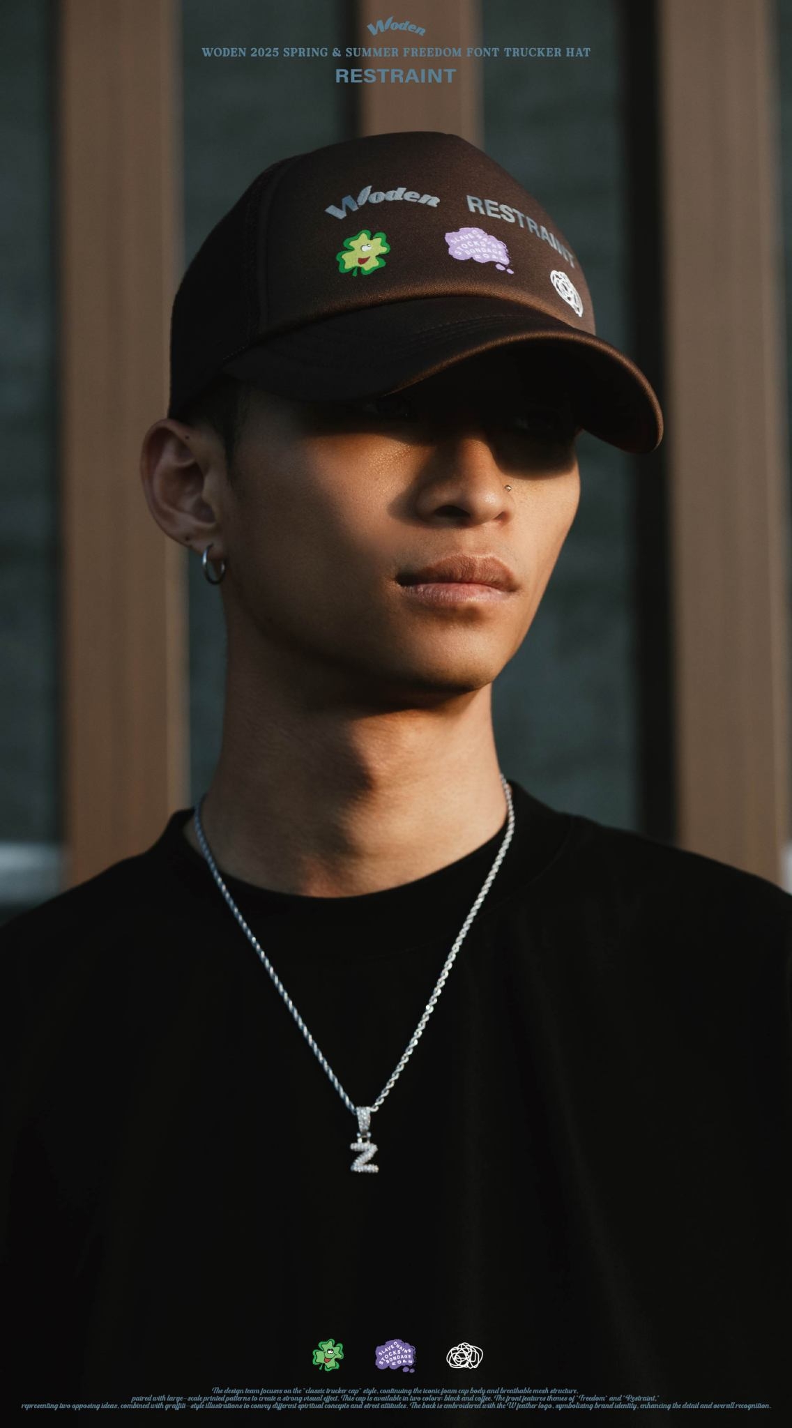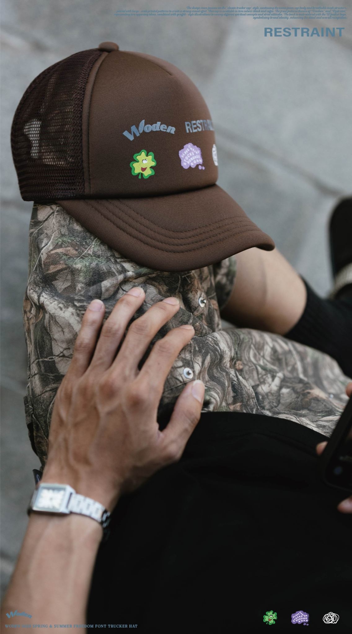 本次設計團隊以「經典卡車網帽」版型為主軸,延續標誌性的發泡棉帽身與透氣網眼結構,搭配大面積印花圖樣呈現出強烈視覺效果。此款帽款共推出黑色與咖啡色兩款,正面分別以「Freedom 自由」與「Restraint 限制」兩種相對思想為主題,結合塗鴉風格插畫,傳遞不同的精神理念與街頭態度。背面則繡上象徵品牌識別的 W 羽毛電繡 LOGO,強化細節層次與整體辨識度。