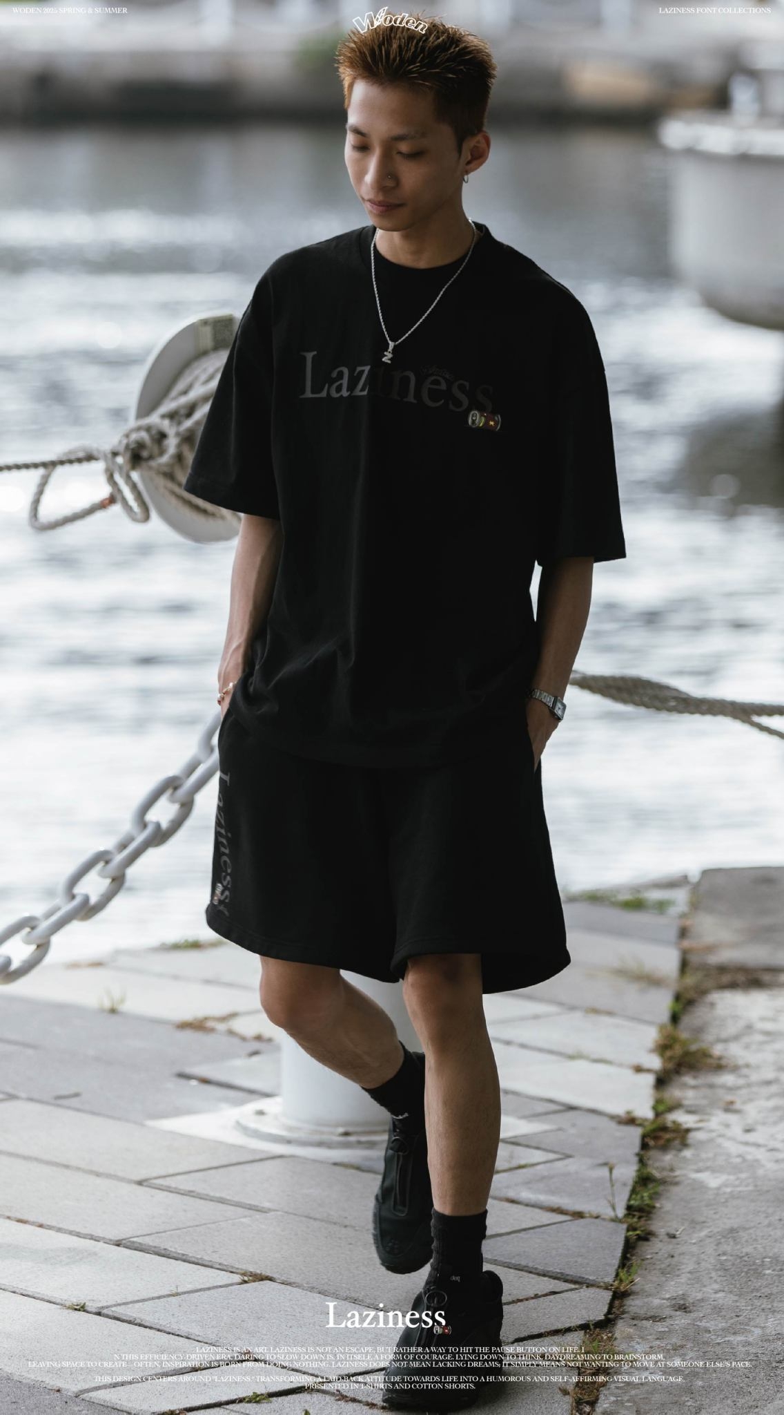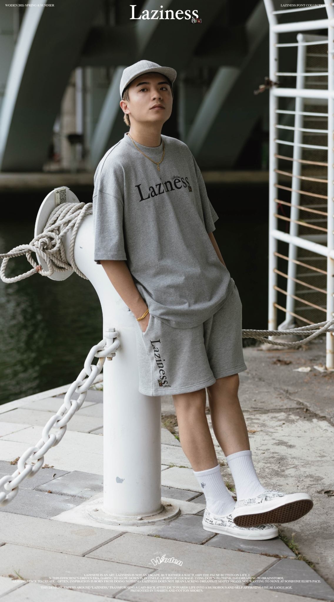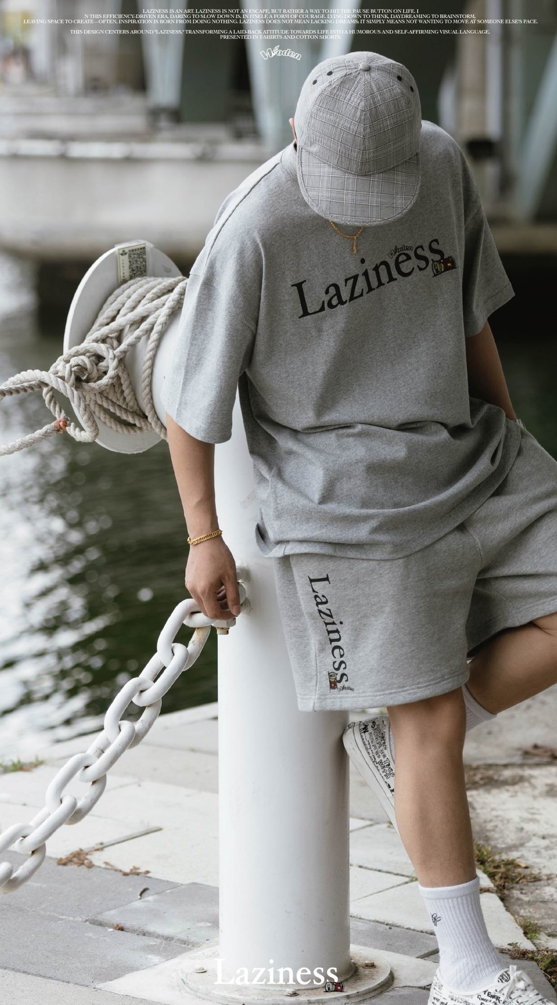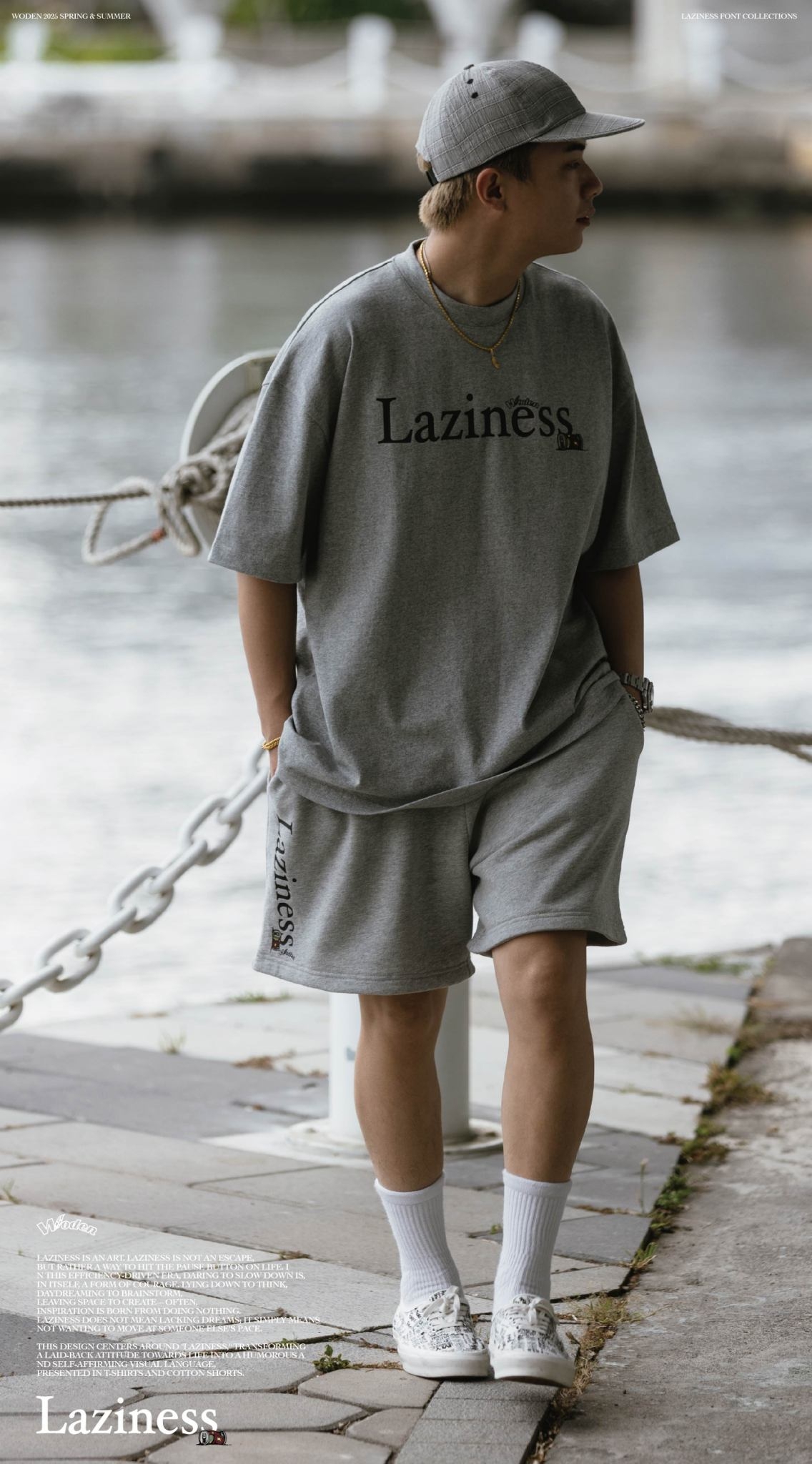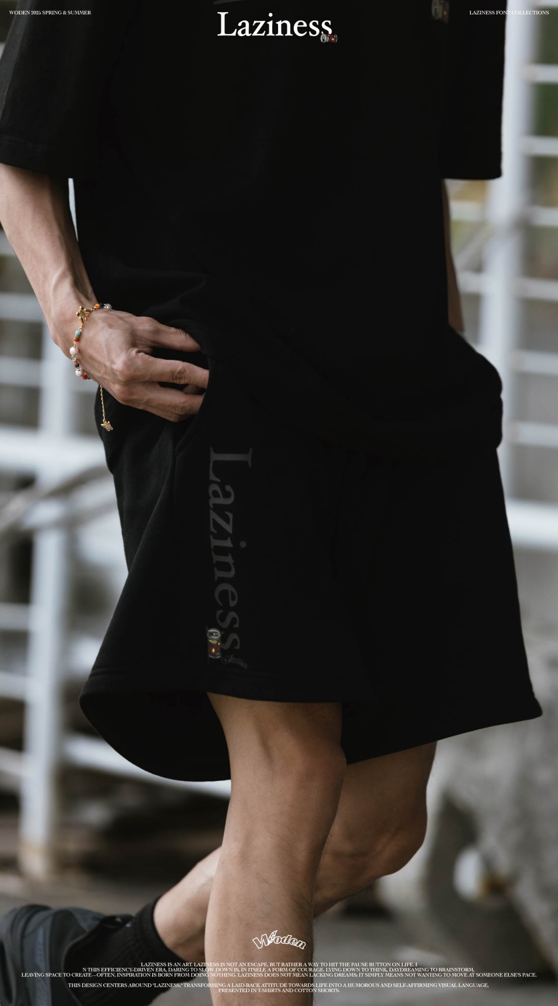 本次設計以「Laziness」為核心,將懶散生活態度轉化為幽默且自我認同的視覺語言,呈現在 T-shirt 與棉質短褲之中。