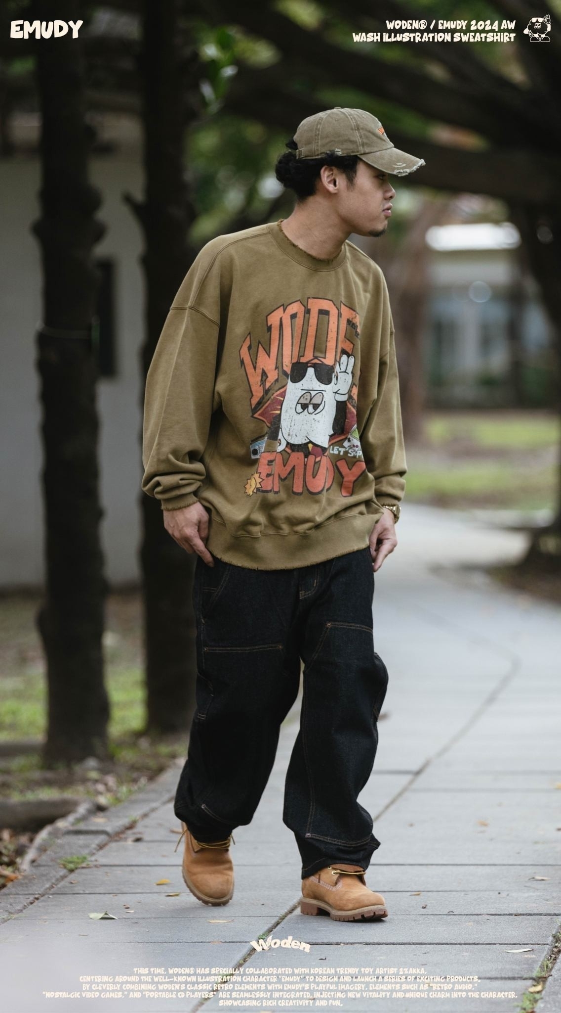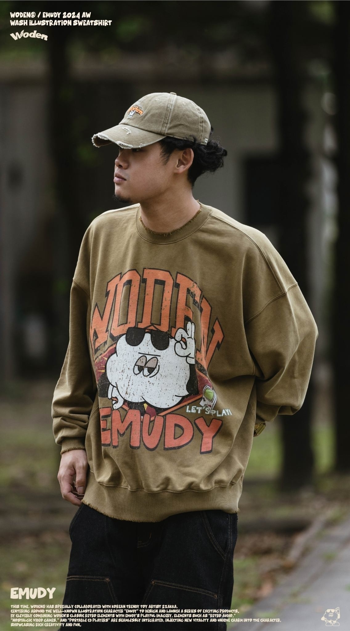WODEN / Emudy 2024 Autumn & Winter Wash illustration Sweatshirt