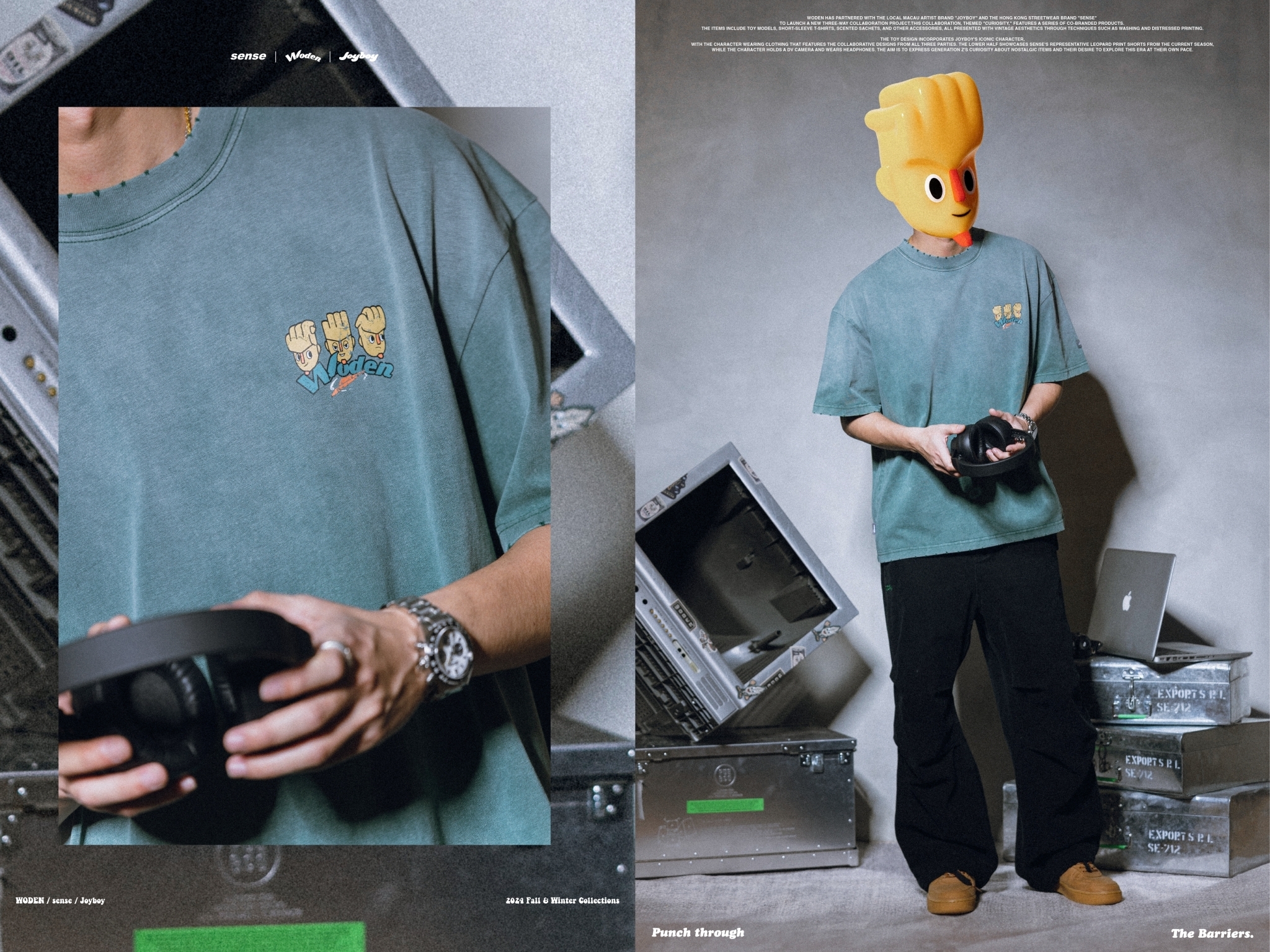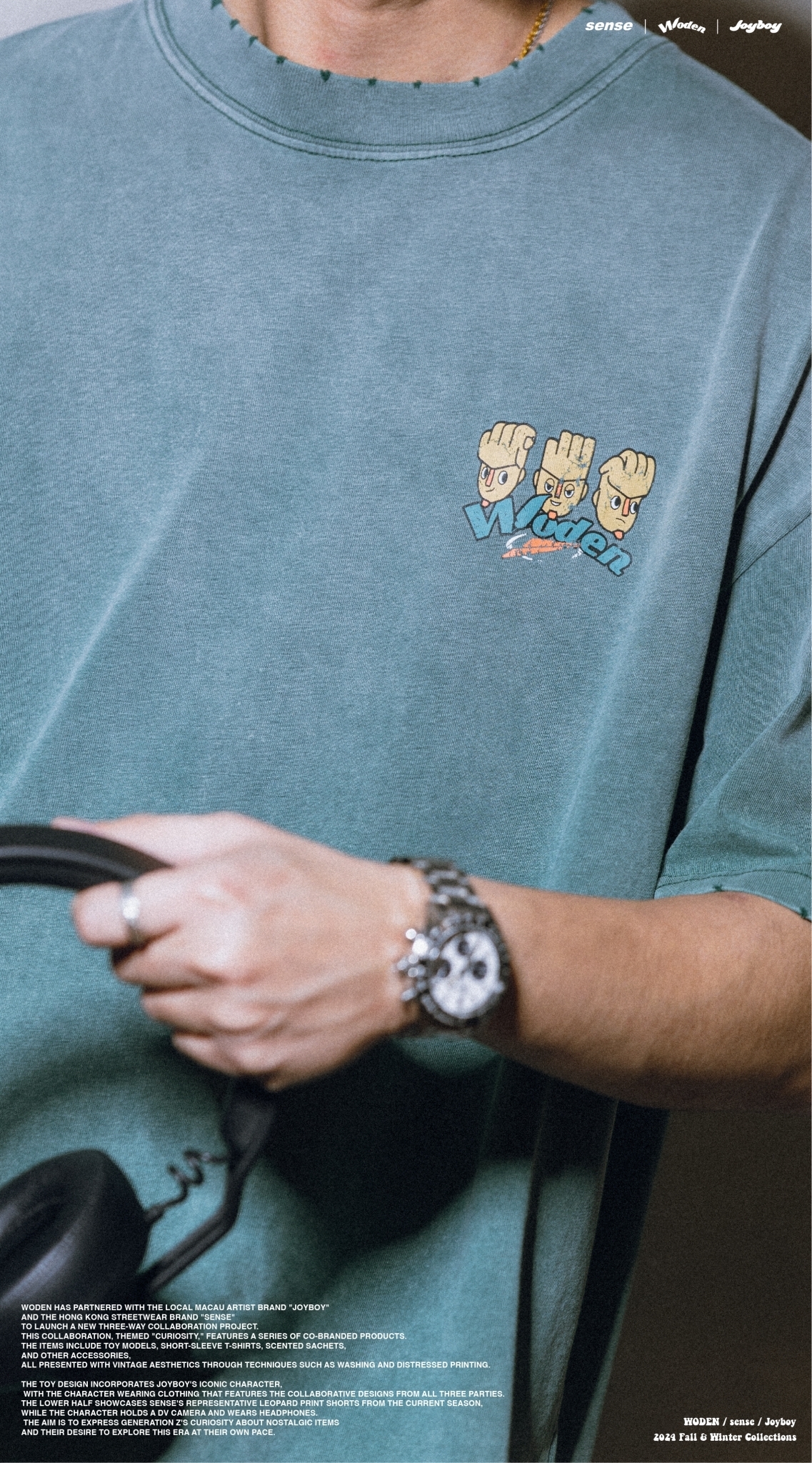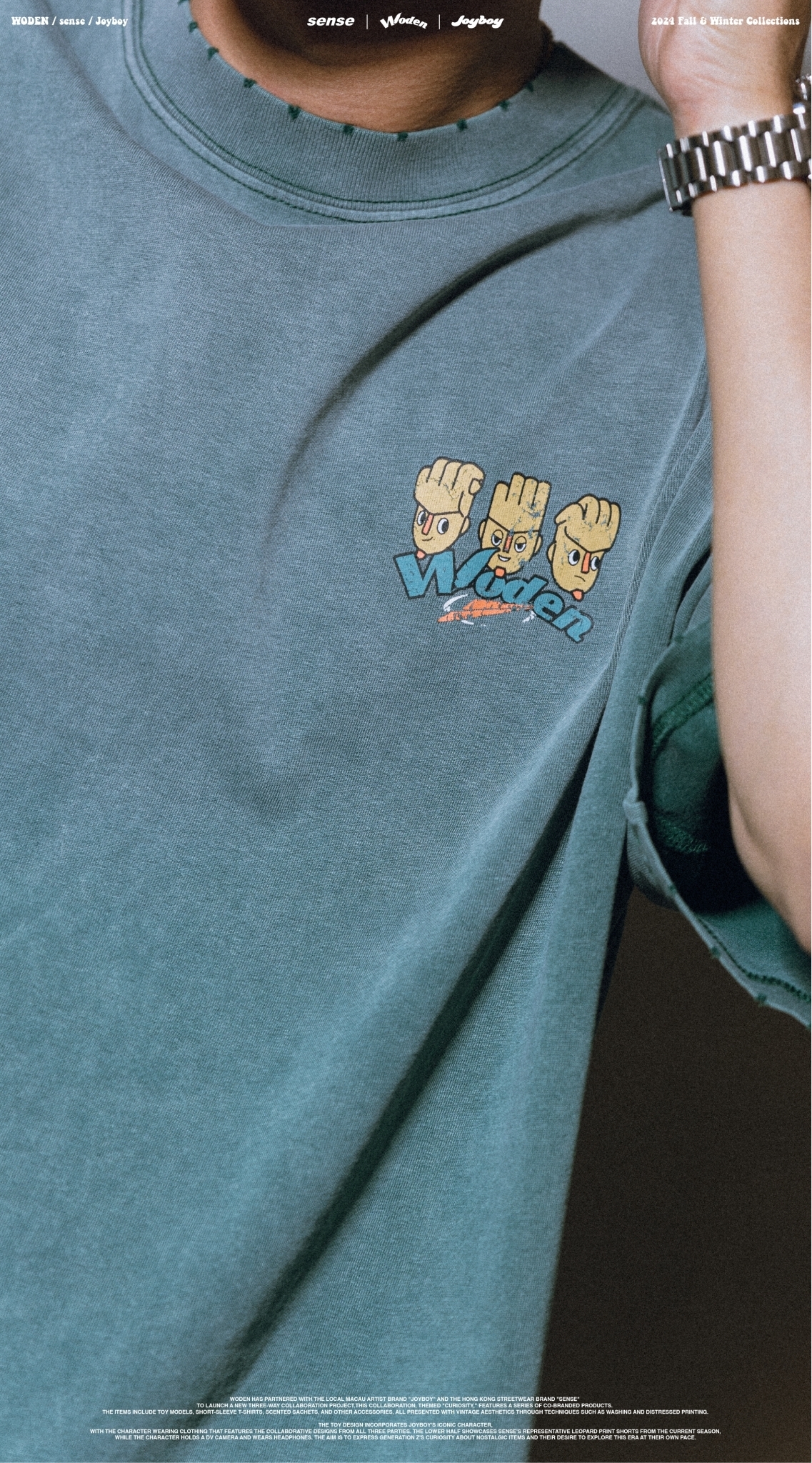 WODEN攜手澳門本土藝術品牌「Joyboy」以及香港街頭品牌「sense」,推出全新三方聯名企劃。本次合作以手繪風格和美式插畫為設計核心,並運用洗水和破壞印刷等工藝,強化整體的復古氛圍。