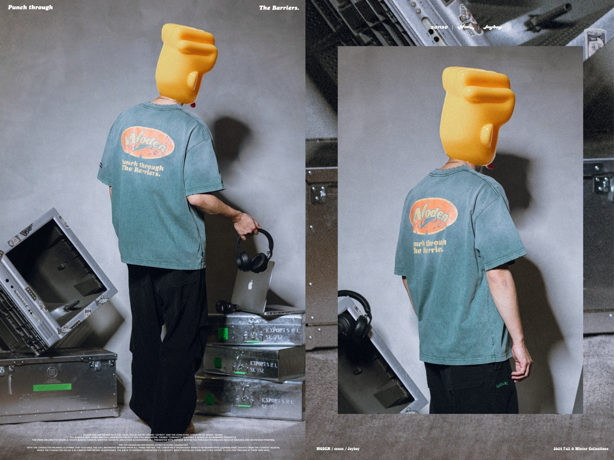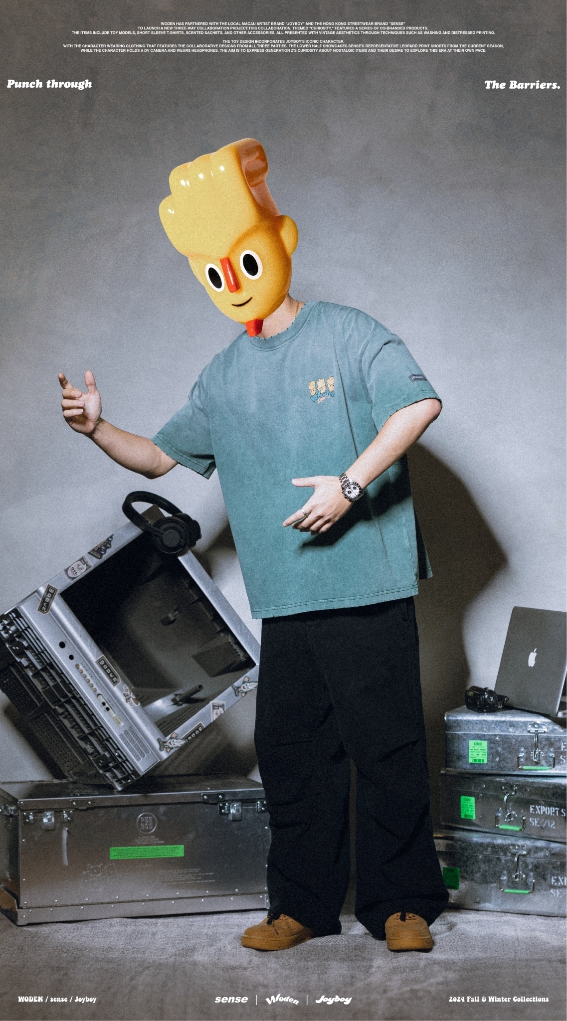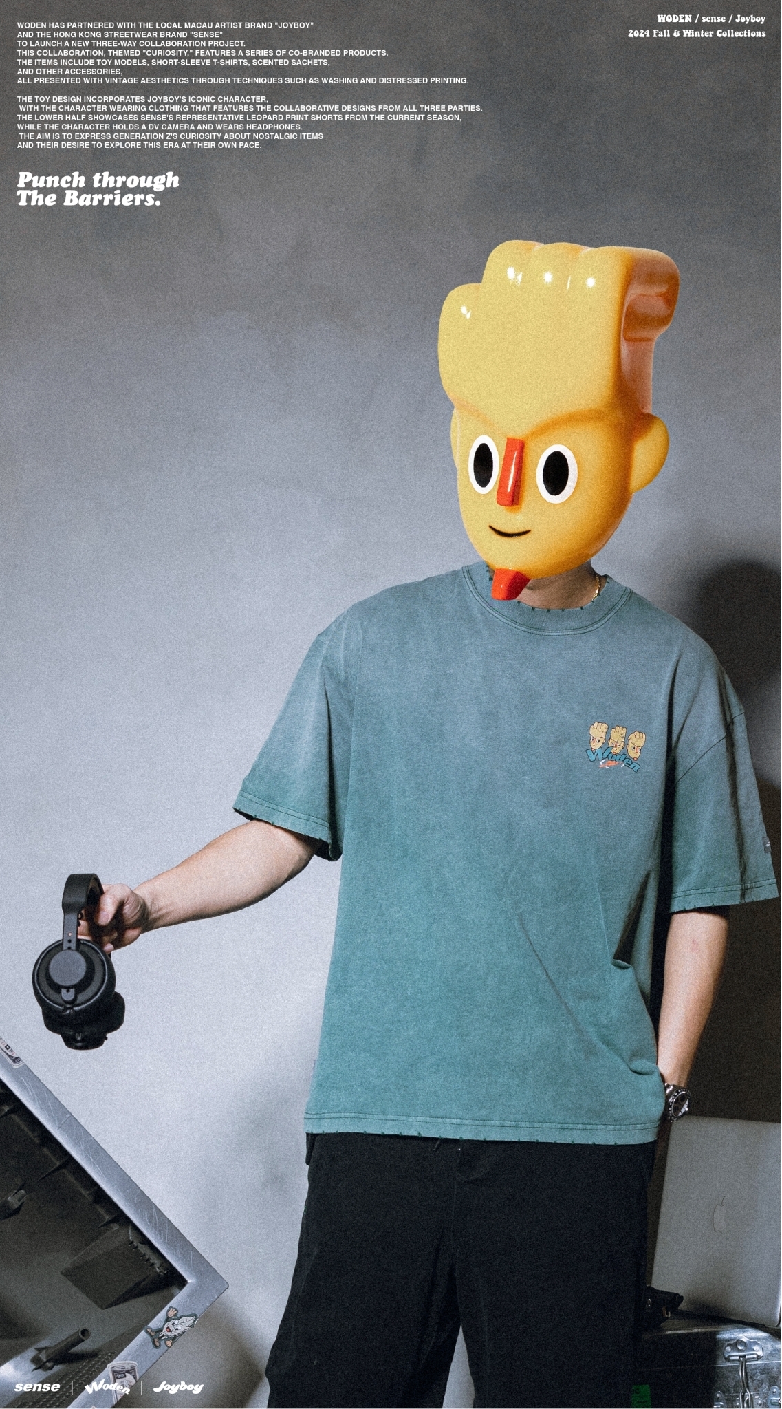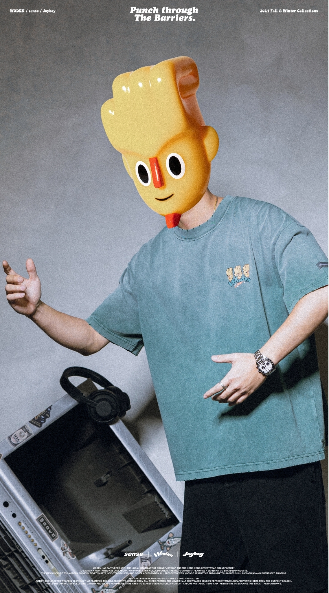 WODEN攜手澳門本土藝術品牌「Joyboy」以及香港街頭品牌「sense」,推出全新三方聯名企劃。本次合作以手繪風格和美式插畫為設計核心,並運用洗水和破壞印刷等工藝,強化整體的復古氛圍。