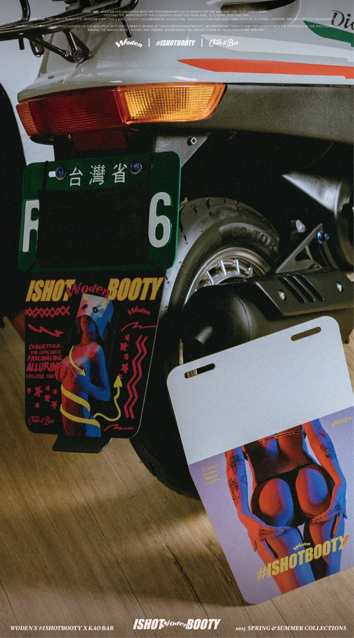 本次特別推出《圖像擋泥板》,搭配《淋雨聲 #ISHOTBOOTY》的美尻攝影人像,並加上手寫字體跟街頭塗鴉,讓你裝上去那瞬間,尾部呈現的"美尻"不只擋泥,更擋不住你的"炫砲"態度。