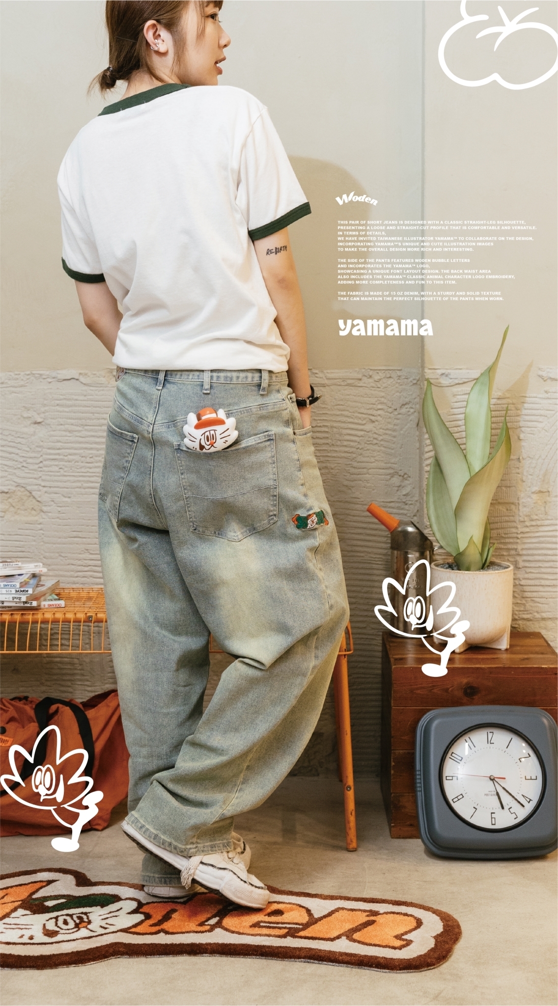 褲身側邊電繡採用了WODEN泡泡字並融入YAMAMA™ 頭像,獨特的字體排版設計展現出獨特的風格。