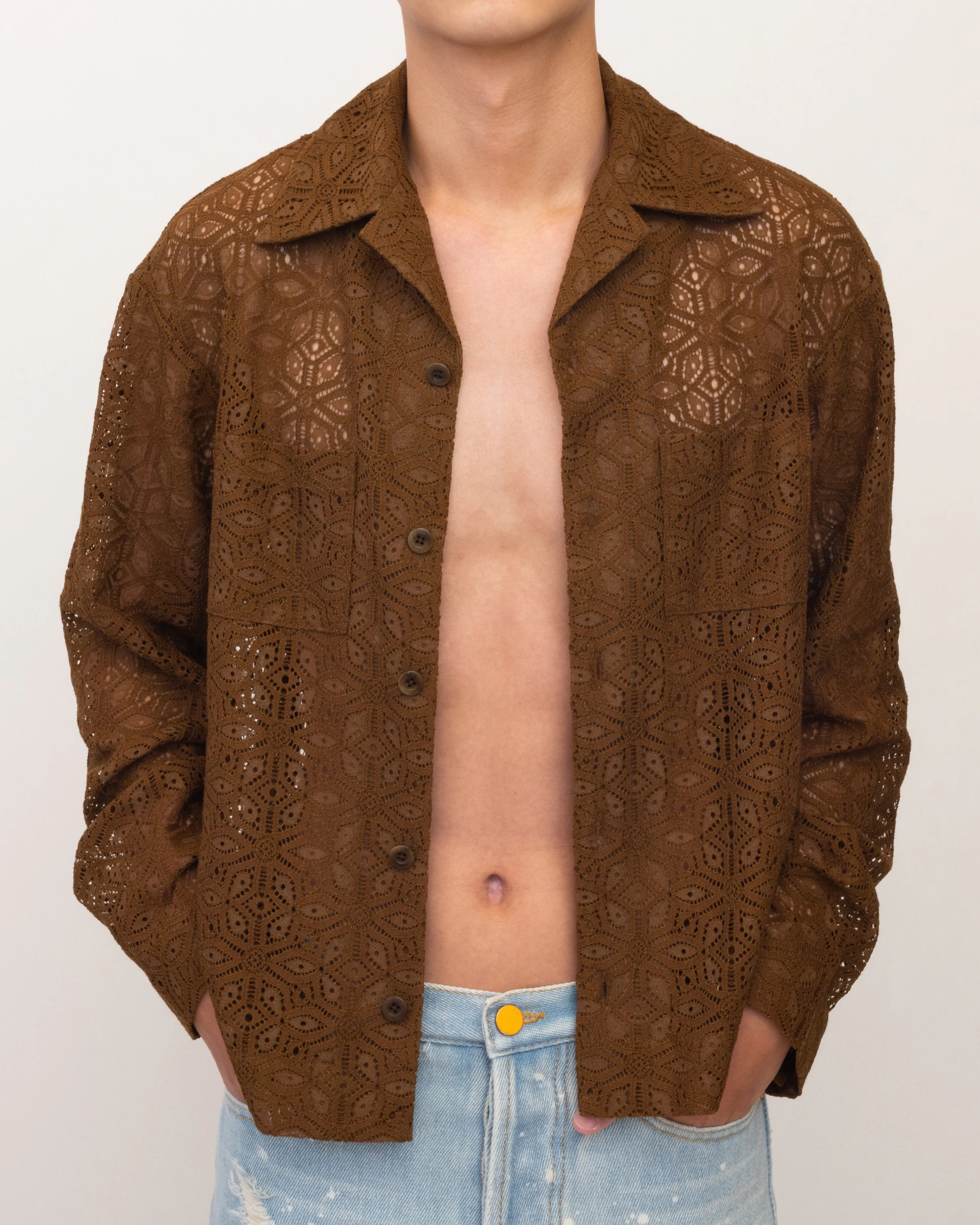 Camp Collar Long Sleeve Lace Shirt / Chocolate